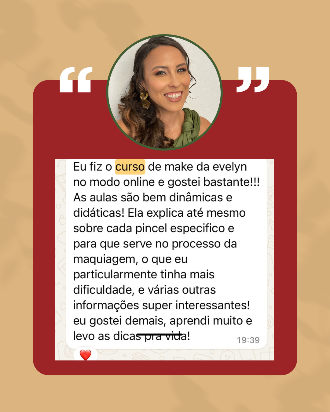 Este curso é ideal para iniciantes e para aqueles que desejam aprimorar suas habilidades de maquiagem orientado por uma profissional com vários certificados e atuante há mais de 9 anos no mercado.